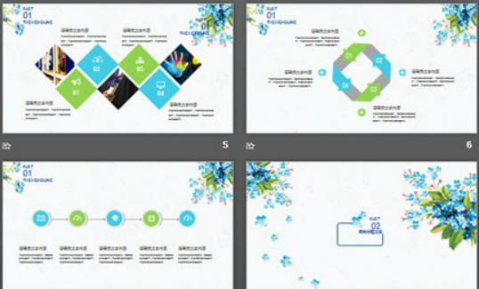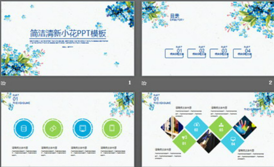 颜色清新,色彩柔和,整体看上去非常舒服,看着不费眼,呈现出的视觉效果更惊艳,能够吸引到更多人的视线,整体看上去更漂亮。简洁清新蓝色小花背景艺术设计PPT模板背景呈现出非常明显的水彩风格,看上去更有特色,个性非常突出。