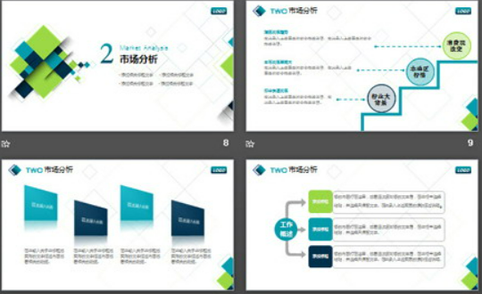 色彩简单,颜色深沉,整体看上去更觉稳重,看着也非常得体,呈现出的视觉效果更醒目,让人一眼就注意到该模板,给人留下更深刻的印象。蓝绿配色的方块图形背景商业融资计划书PPT模板使用一些多边形作为修饰,整体看上去更规矩。