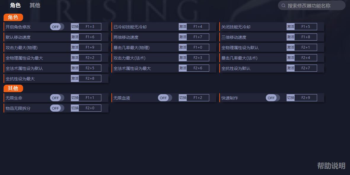 3.开启修改器各主初始项再使用各子修改项[无主初始项则不用开启][主初始项:如开启...修改]。