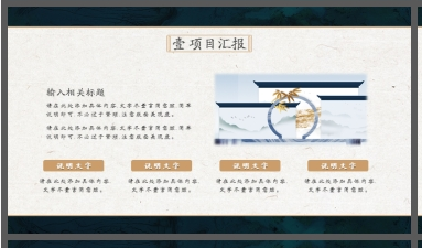 颜色深沉,整体看上去非常有创意,呈现出非常明显的水墨风格,整体看上去更漂亮,呈现出的视觉效果更惊艳,让人眼前一亮,能够吸引到更多人的视线。水墨夜色背景的中国风商务汇报PPT模板背景看上去非常有内涵,整体看上去更有文化,看着也非常美观。