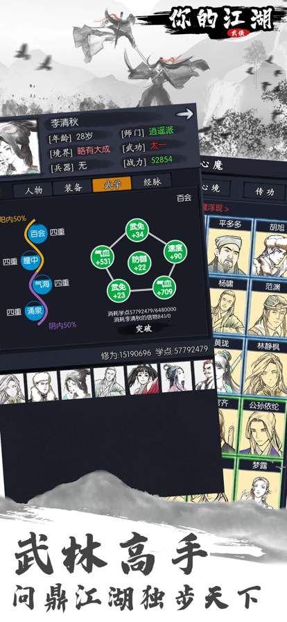 3. 武学系统:游戏中有丰富的武学系统,玩家可以学习各种招式和内功,打造独特的战斗风格。