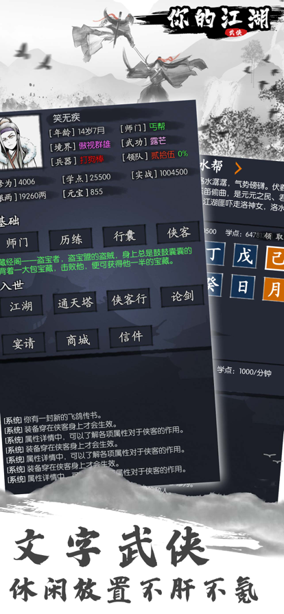 4. 任务接取:通过任务系统接取各种江湖任务,完成任务可以获得经验和奖励。