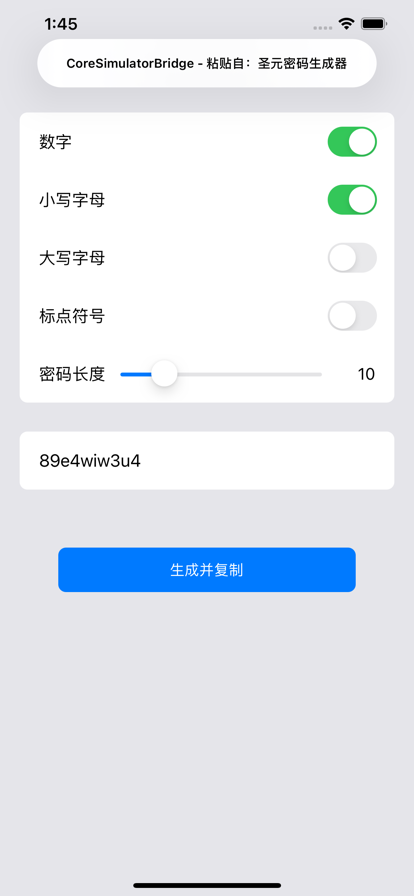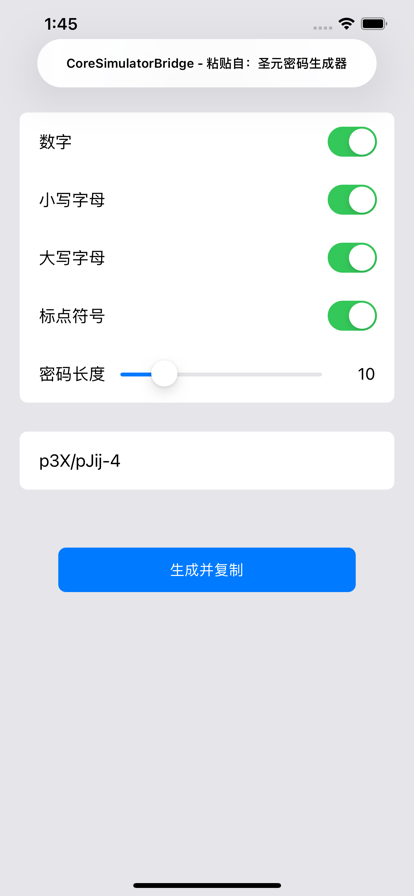 1. 圣元密码生成器苹果版支持用户通过简单的界面操作,快速选择所需的密码类型和长度,一键生成复杂密码。