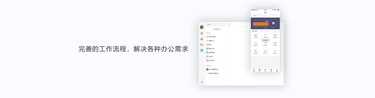 支持微应用功能,可以用来满足企业一站式办公管理需求,实现了OA系统的灵活配置以满足更多个性化需求。