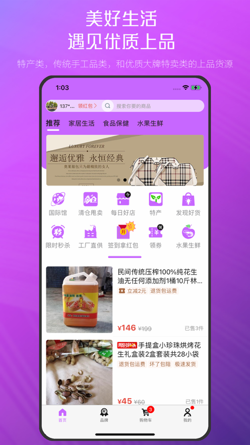 在遇上品上,无论小伙伴们喜欢什么商品,都可以在软件中搜索到,价格十分优惠且质量有保障,下单后还会有专门的配送人员送货上门,会将商品完好的送到用户们的手中,对这款软件感兴趣的朋友们赶紧下载试一试吧!