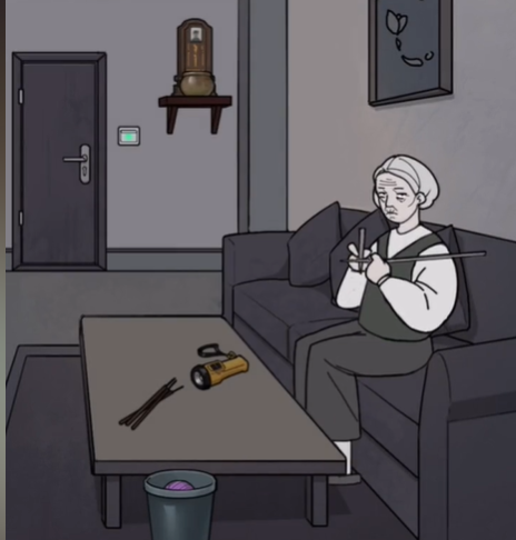 接着就是把奶奶的紫色毛线团丢进垃圾桶之中,把桌子上的香放到香炉里面。