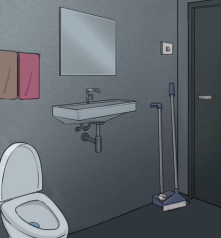 在厕所捡起地上的纸条查看规则,把粉色毛巾丢进马桶。