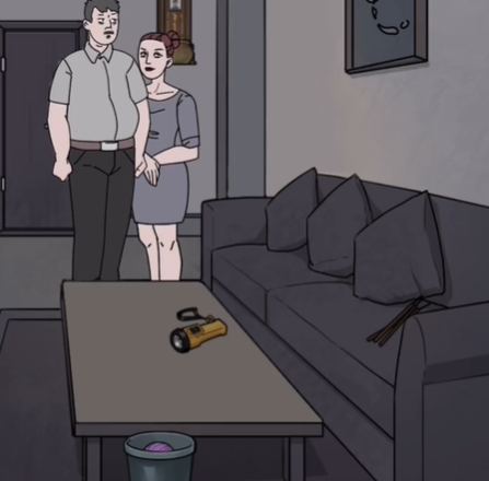 打开墙上的开关,把手电筒给他们,沙发上的香放进香炉。