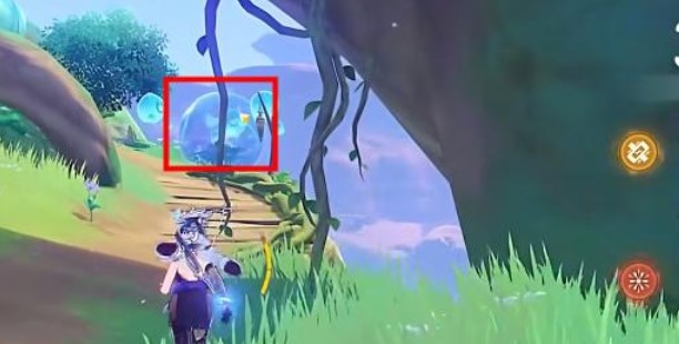 4、第二只水形幻灵:来到水泡这里朝着下图方向移动,摧毁三个绿色球体就能找到第二只水形幻灵。