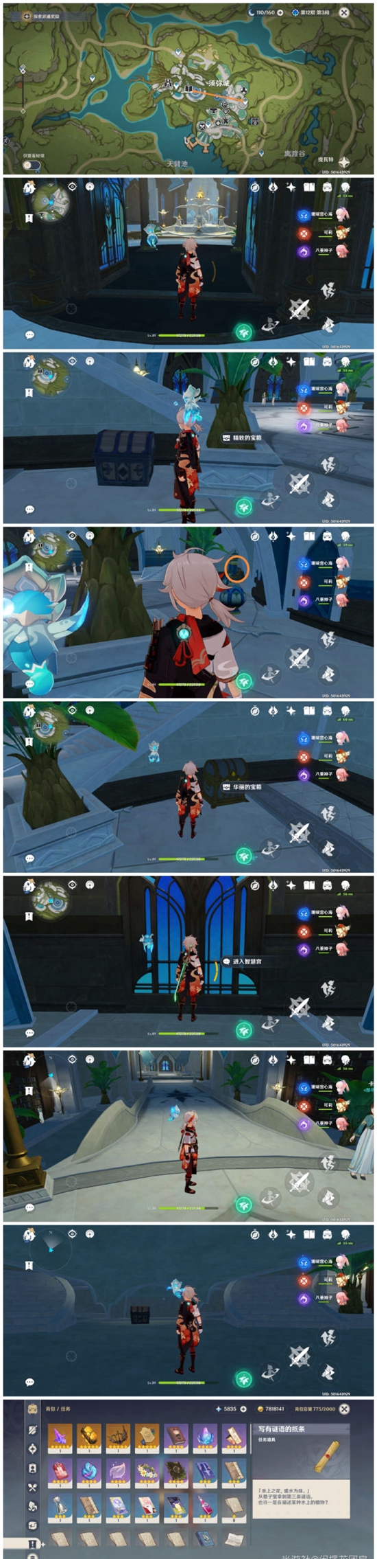 7、前往智慧宫,在智慧宫里的桥下有个宝箱,里面能开出第三份纸条。