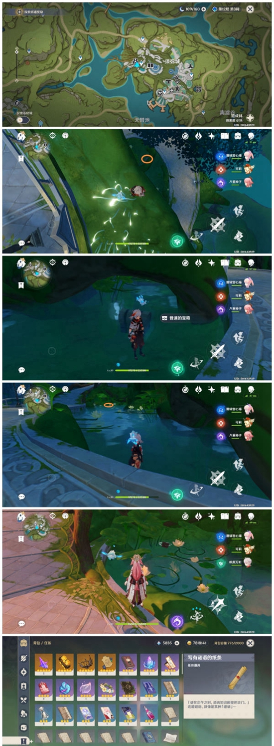 8、从这个传送点跳下来,找到水里的木箱,调查获得最后一份纸条。