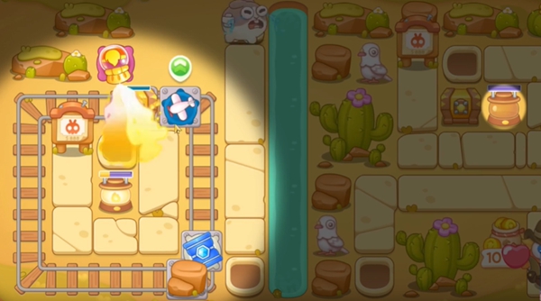 左上的位置上摆放上两个炮仗塔,这样是能锁定桶兔子来进行攻击的。