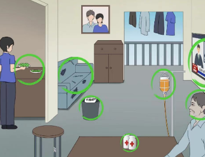 1、点击粗茶淡饭、破旧的家具、手术同意书、吊水、药瓶、保险宣传单、天气预报、病重的男人。