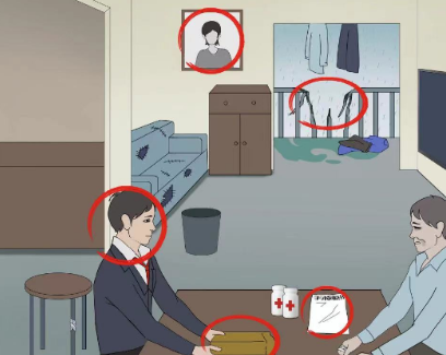 3、点击妻子的遗照、保险人员、一大袋东西、手术同意书、坏掉的围栏。