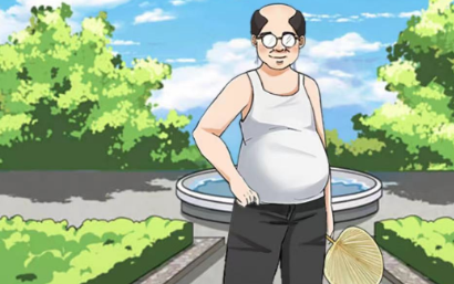 背景:白色背心、黑色裤子、蒲扇,长按切换姿势。
