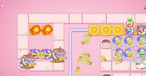 1、玩家在轨道上建造一个满级火瓶,来清理同侧轨道上的障碍物。