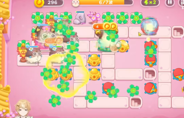 4、继续在地图上面补充五叶草来增加伤害,并将所有炮台升到满级。