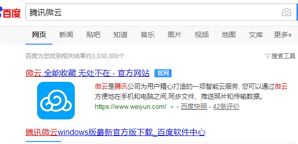 1.在自己电脑上的浏览器中搜索腾讯微云,然后进入官网