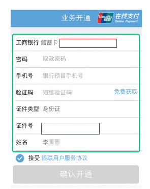 3、实名完成后开始关联银行卡,按照流程输入即可: