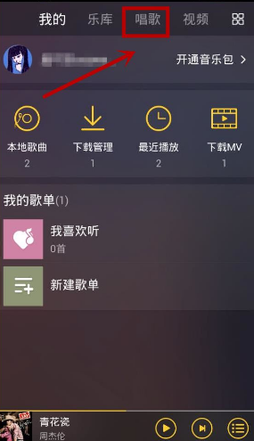 1、打开酷我音乐app,点击页面上方的“唱歌”按钮;
