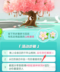 总之,领取桃树装扮不仅能为你的蚂蚁森林增添乐趣,还能体现你在环保行动中的积极参与。按照上述方法,快去领取属于你的桃树装扮,让你的蚂蚁森林更加与众不同吧!