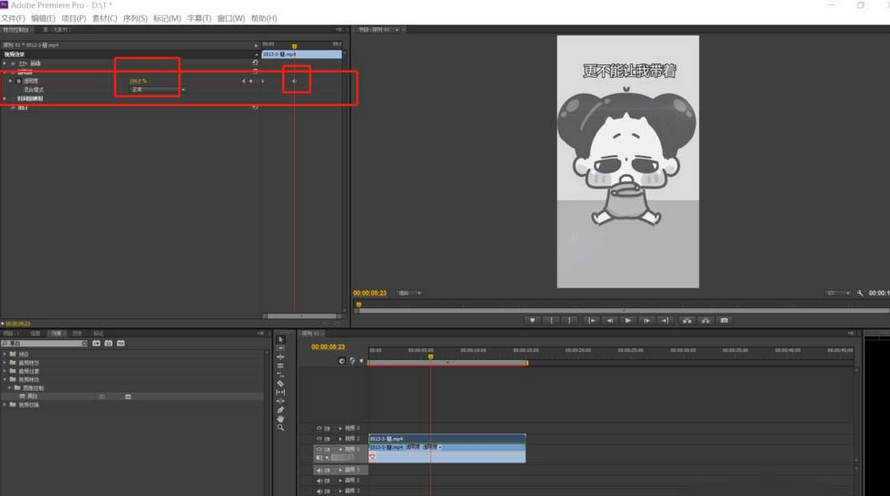 把素材拖入轨道后,复制粘贴后叠放在上一轨道上,如图。