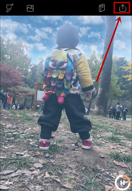 1、当照片已经编辑好以后,点击顶端菜单栏中最右边的【分享】标志;