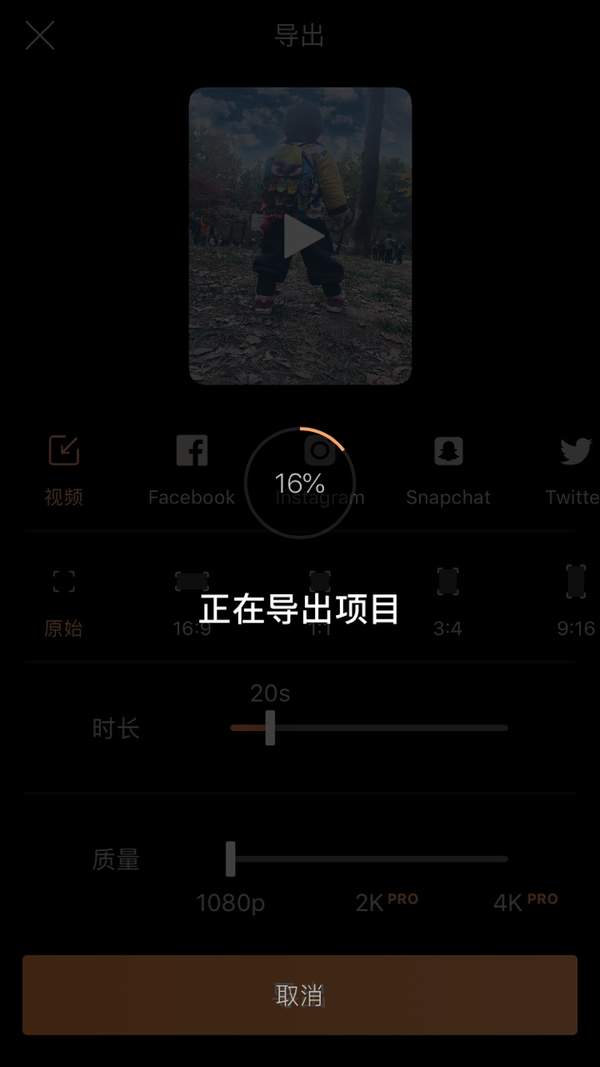 2、进入导出页面以后,设置视频的时长、质量以及画面比例等,都设置好以后,点击【导出】;