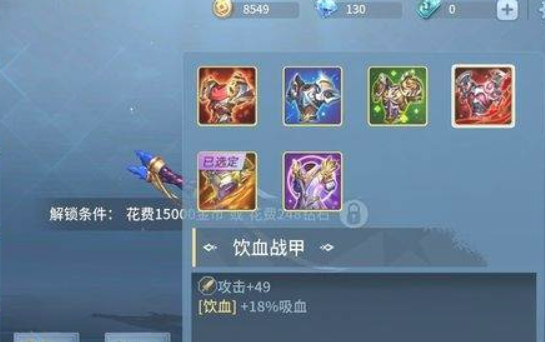 3、饮血战甲加成了大量攻击力与吸血效果,可以使刺客快速恢复状态。