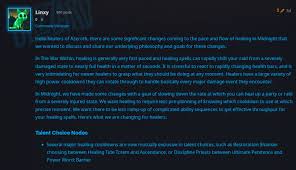 - 治疗效果有了微调,在保持基础治疗量稳定的同时,对暴击和精通属性的收益进行了优化。暴击时的治疗量加成更加可观,精通属性对治疗效果的提升也更加平滑。