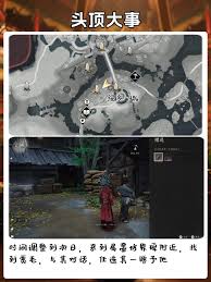 头顶大事是游戏里一个重要的任务环节,玩家需要在特定场景中完成一系列任务,以推动剧情发展。主要目标是解决某个与头顶相关的重大问题,过程中会涉及到各种角色互动和谜题破解。