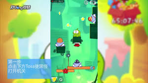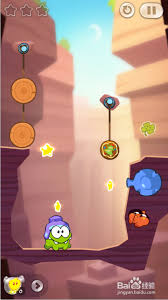 1. 首先割掉连接小怪兽上方平台的绳子,让平台下落,这样小怪兽就能到达下方的一个较短平台上。