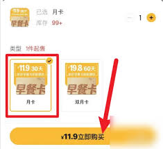 打开app后,在首页下方的菜单栏中,找到“早餐月卡”选项。若首页未显示,可通过滑动屏幕或点击“更多”等按钮查找。