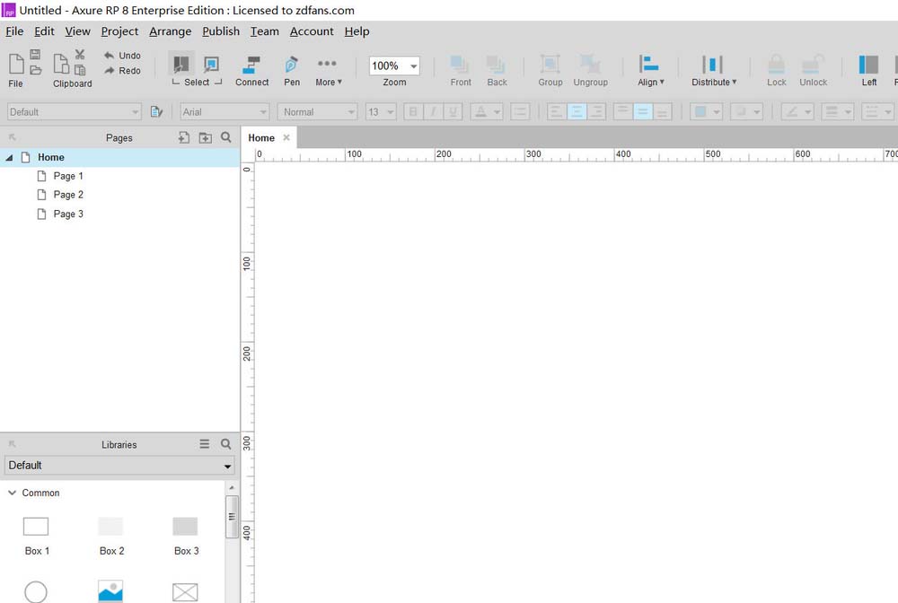 首先打开axure软件,进入到axure界面中