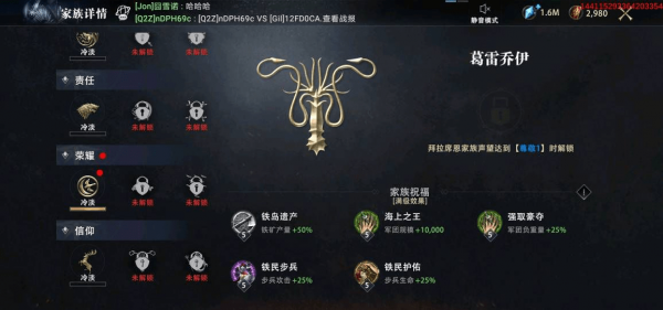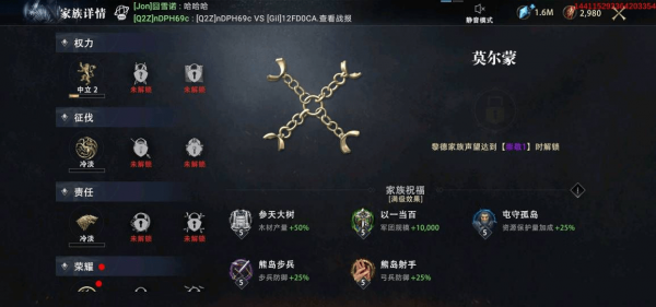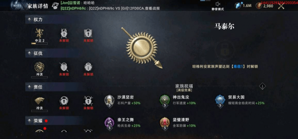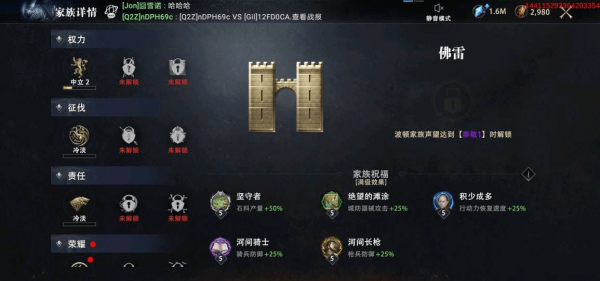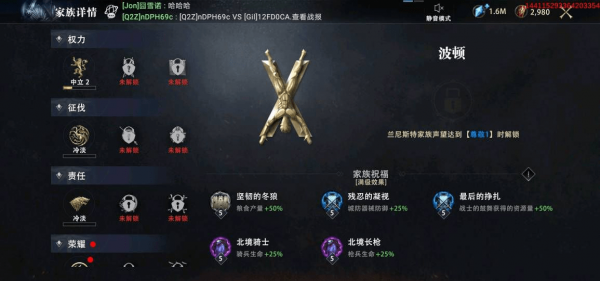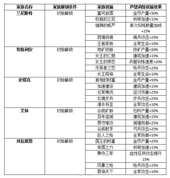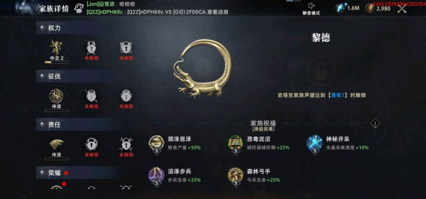 权力的游戏凛冬将至家族满声望祝福效果大全是游戏家族玩法,15个家族都有独特祝福效果喔,那么权力的游戏凛冬将至家族满声望祝福效果有哪些、权力的游戏手游全家族buff加成效果呢,下面为大家带来介绍吧。