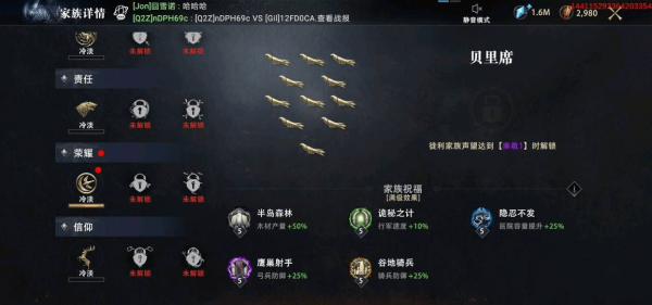 以及需初始解锁家族声望达[尊敬1]、[崇敬1]才可解锁的10个家族满声望祝福效果一览如下: