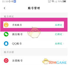 点击进入账号绑定页面后,你会看到多种可绑定的方式,找到“手机号”选项并点击。