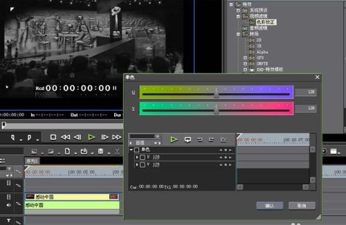 在单色对话框中勾选单色,并对u和v分别添加关键帧,选择一定时间段,再次添加关键帧。