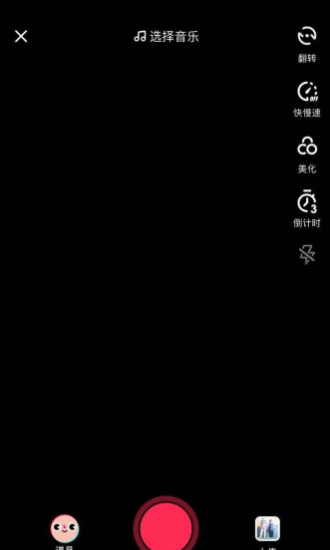 1、点击打开抖音的拍摄页面,点击下面的“上传”。