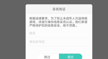 2、正确的填写姓名和身份证号码,然后点击【提交】即可进入游戏;