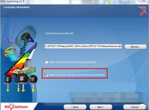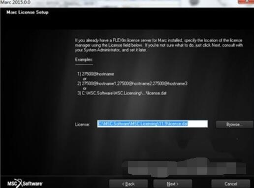 14、弹出界面,点击Borwse...,选择C:MSC.SoftwareMSC.Licensing11.9目录下的“license.dat"文件