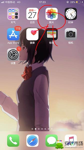 1、这里以苹果手机举例,首先找到我们的【照片】功能点击进入;