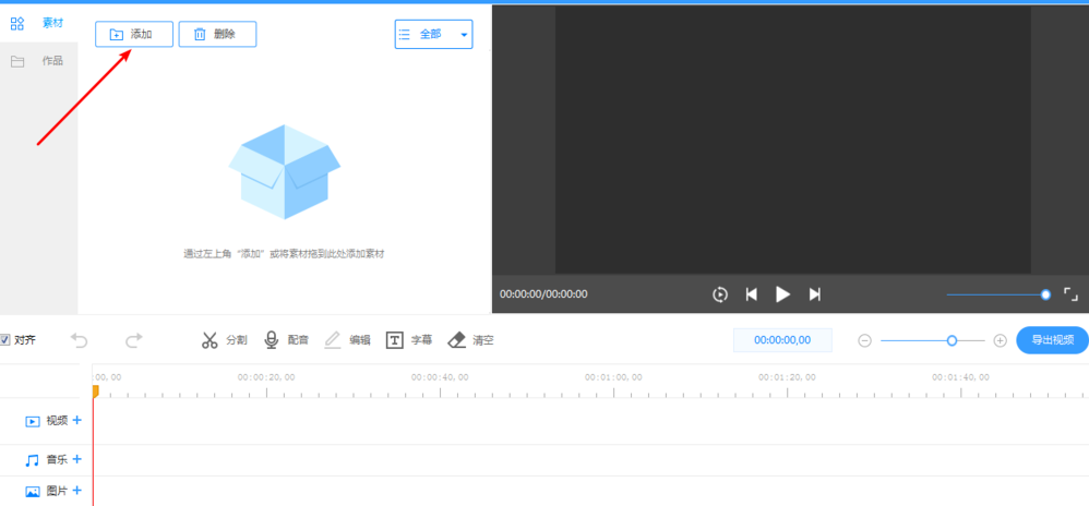 首先打开EV剪辑软件,点击【添加】,导入视频文件,