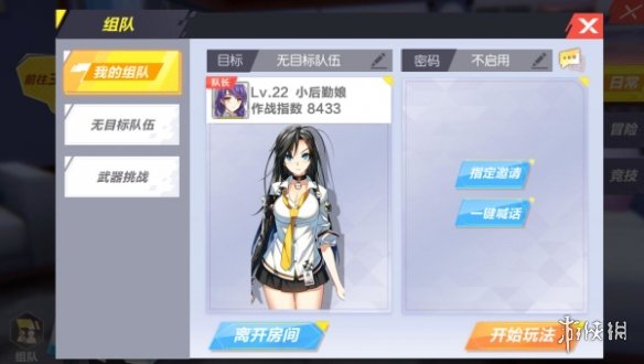 1. 组队界面可与其他指挥官共同挑战天空防御战、武器挑战和饰品挑战3种副本;