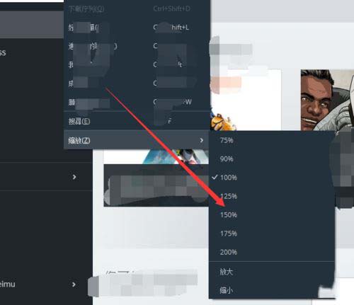 作为例子小编选择放大150%,可以根据需要选择调节倍数