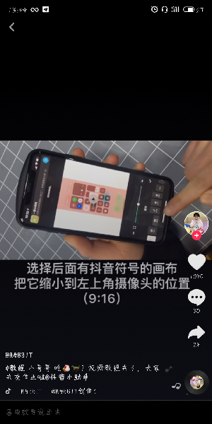 4、选择后面有抖音符号的画布,把他缩小到左上角摄像头的位置。