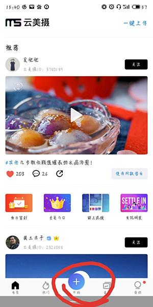 1、打开云美摄APP,点击西方的+号,进行视频拍摄。