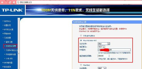 4、再点击“无线安全设置”,里面就可以更改密码了,一般选择WPA-PSK/WPA2-PSK加密方法(密码要8-16个的,可以字母数字组合)。