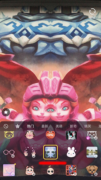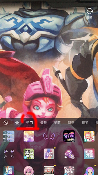 2、在道具功能中选择“热门”,在热门中找到如下图所示的特效图标