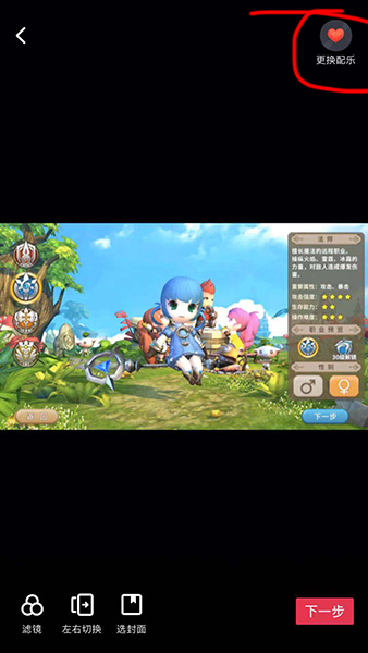 3、然后可以点击右上角的【更换配合】,选择自己想要的背景音乐,完成之后点击下一步即可。